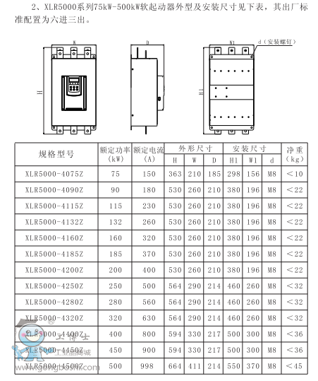 欣靈XLR5000-4450Z中文智能軟起動器 功率450KW 線圈電壓AC(DC)380V |