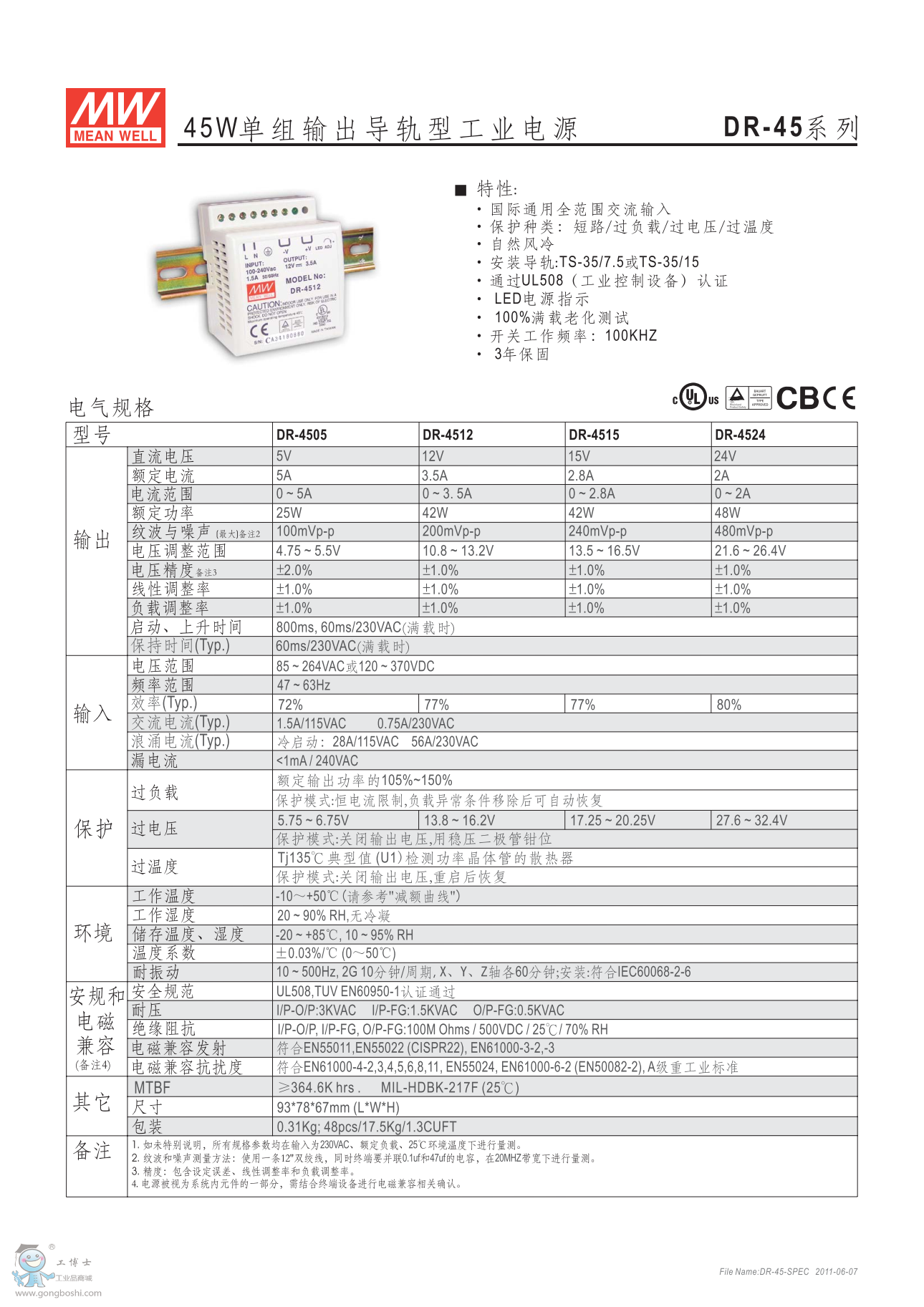 臺灣明緯導軌電源DR-45-12 12V3.5A 供應 |