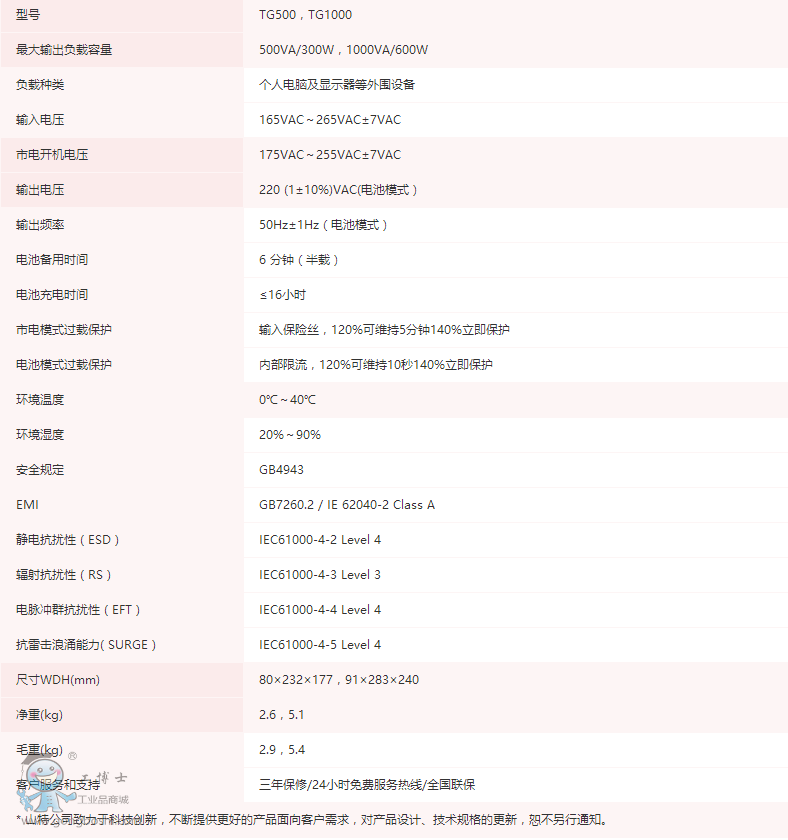 山特UPS電源后備式TG1000輸出電壓220V