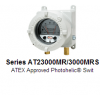 Using solid state technology, the SERIES AT23000MR AND AT23000MRS ATEX Approved Photohelic® Switch/Gages combine the functions of a precise, highly repeatable differential pressure switch with a large easy-to-read analog pressure gage. Gage reading is unaffected by switch operation and will indicate accurately even if power is interrupted. AT23000MR series employ versatile electromechanical relays with low amperage ratings-ideal for dry circuits. For applications requiring high cycle rates, choose AT23000MRS models with SPST (NO) solid state relays. Easy to adjust set point indicators are controlled by knobs located on the gage face (accessible opening case after de-energizing instrument). All models provide both low and high limit control. Compatible with air and other non-combustible, non-corrosive gases, they can be used in systems with pressures to 25 psig (1.725 bar). Optional construction is available for use to either 35 psig (2.42 bar) or 80 psig (5.51 bar).