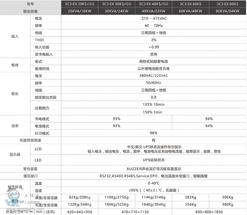 先進(jìn)的智能化充電方式透過(guò)CPU的控制,UPS的充電器可以依據(jù)不同的環(huán)境條 件,修正充電參數(shù),提供*優(yōu)化的電池充電方式。設(shè)計(jì)了多各充電方式,根據(jù)電池的類型,電池節(jié)數(shù)和電池的使用狀態(tài)選擇*佳的充電方式。科學(xué) 的充電方式,使的電池的使用壽命得到了延長(zhǎng)。并且可以加配充電單元,使多組電池的回充電時(shí)間也大為縮短。