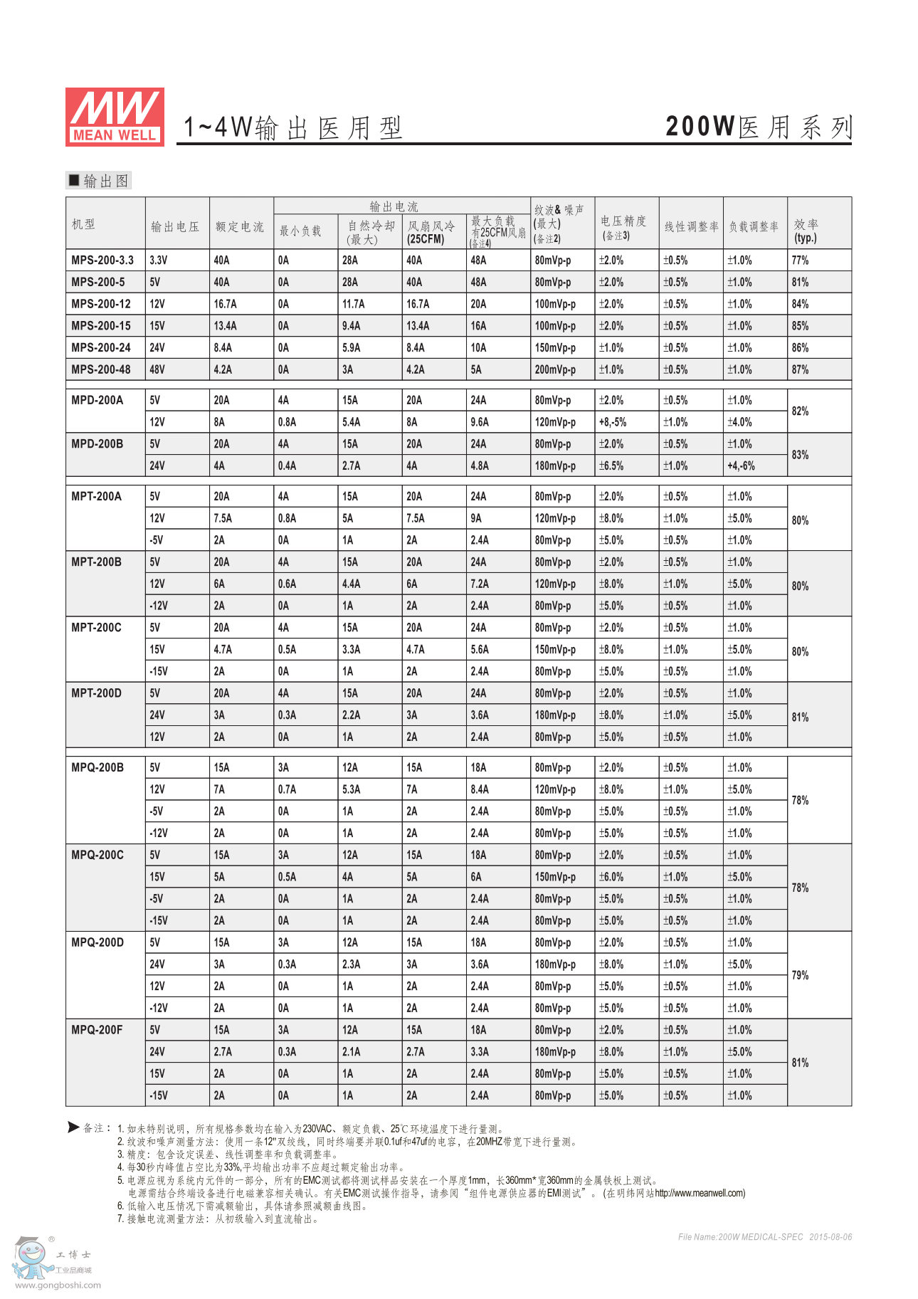 明緯醫用型裸版遙控開關電源MPQ-200B