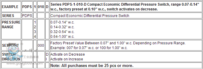 PDPS系列 經濟型微差壓開關采用了大尺寸的隔膜片和快開開關,穩定可靠,常用于OEM設備制造中。PDPS系列差壓開關可以監測正壓,負壓和差壓,工廠在出廠時預設的設定點值在0.07英寸水柱到1.0英寸水柱之間,可重復精度為0.02英寸水柱。PDPS另外還帶有:適配多種軟管的接頭,固定安裝和快速插拔的接線頭,這些都特別適合在OEM設備中應用。