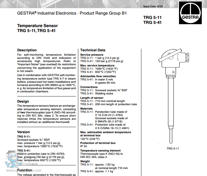 The Flowserve Gestra TRG temperature control is designed to control the temperature.