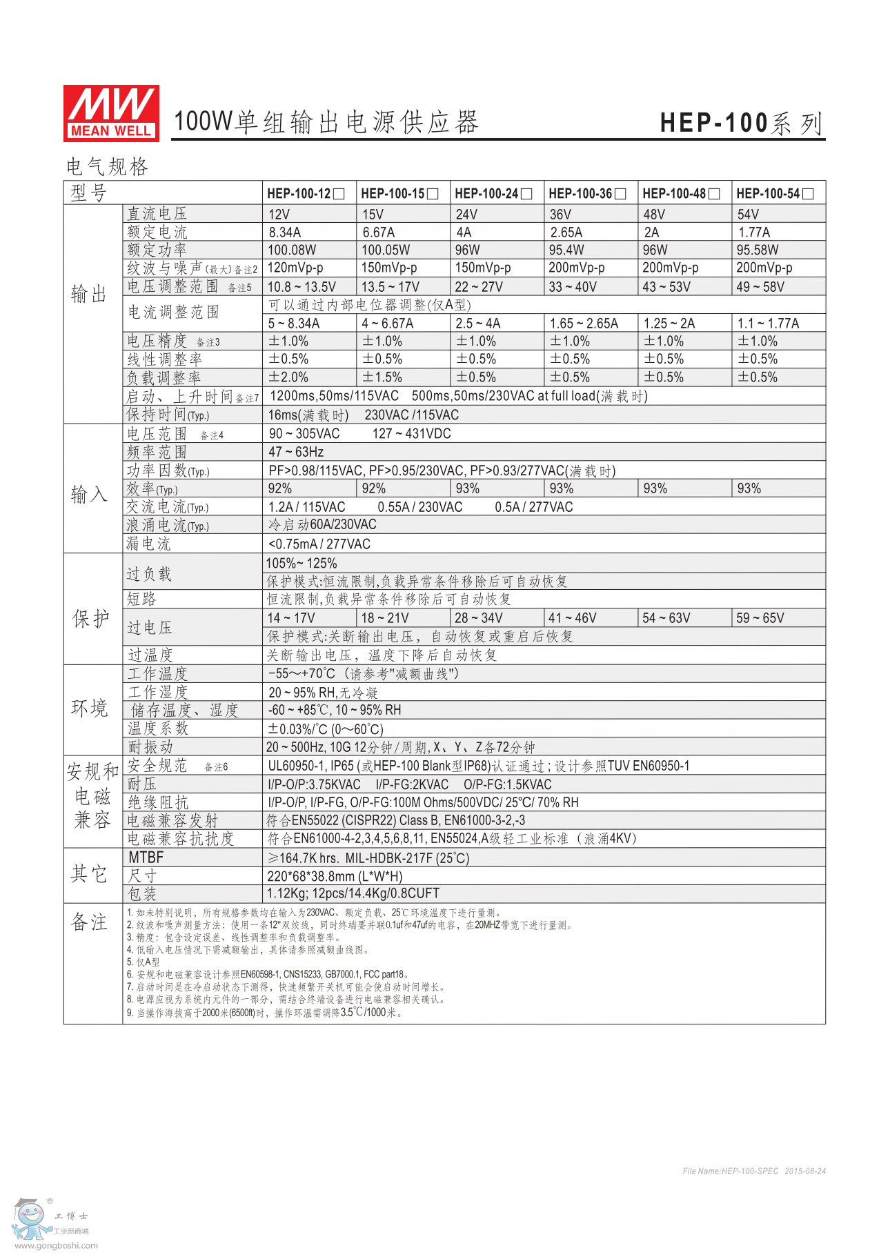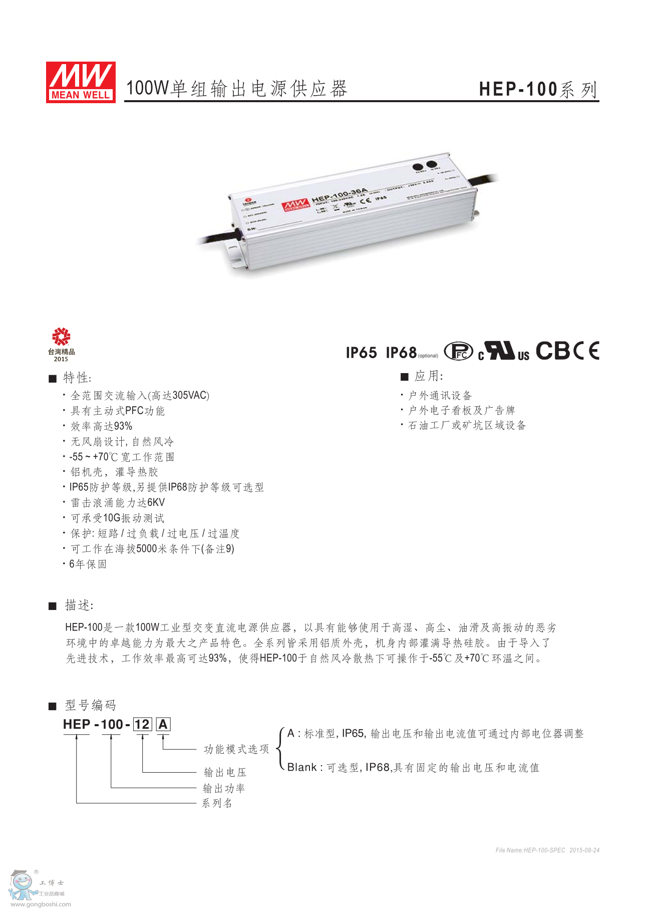 明緯HEP-100-48 100W單組輸出電源 |