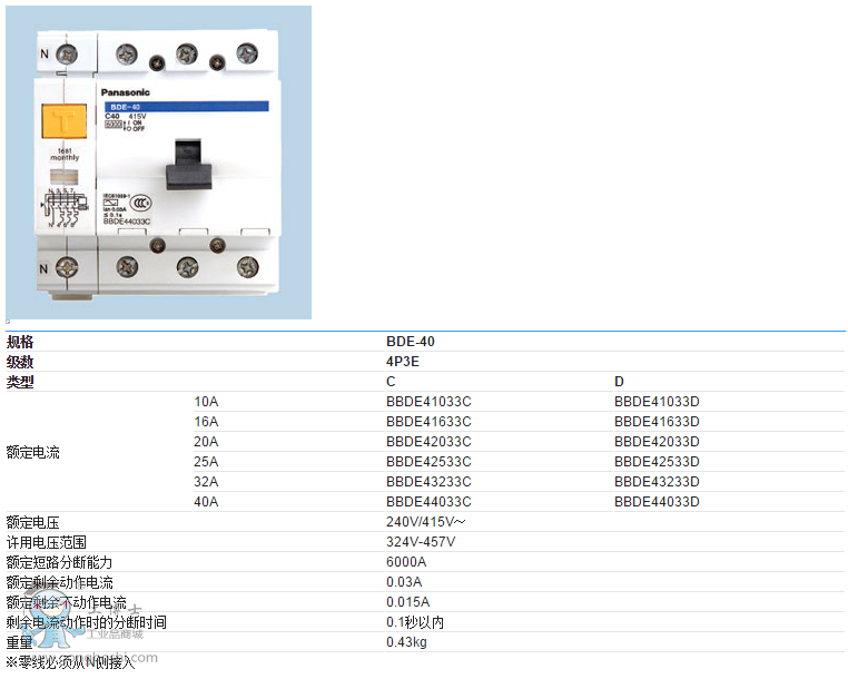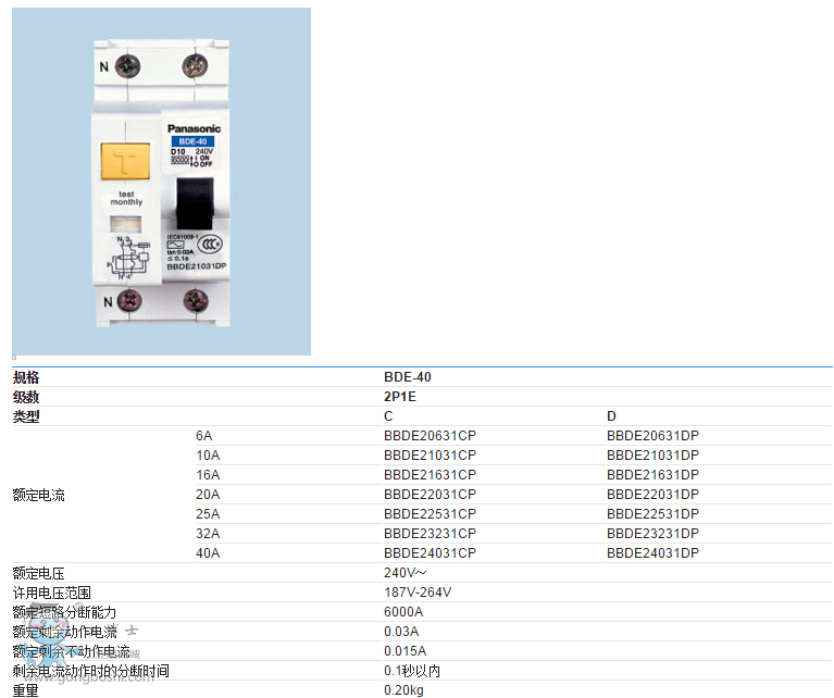 松下漏電斷路器BDE-40系列