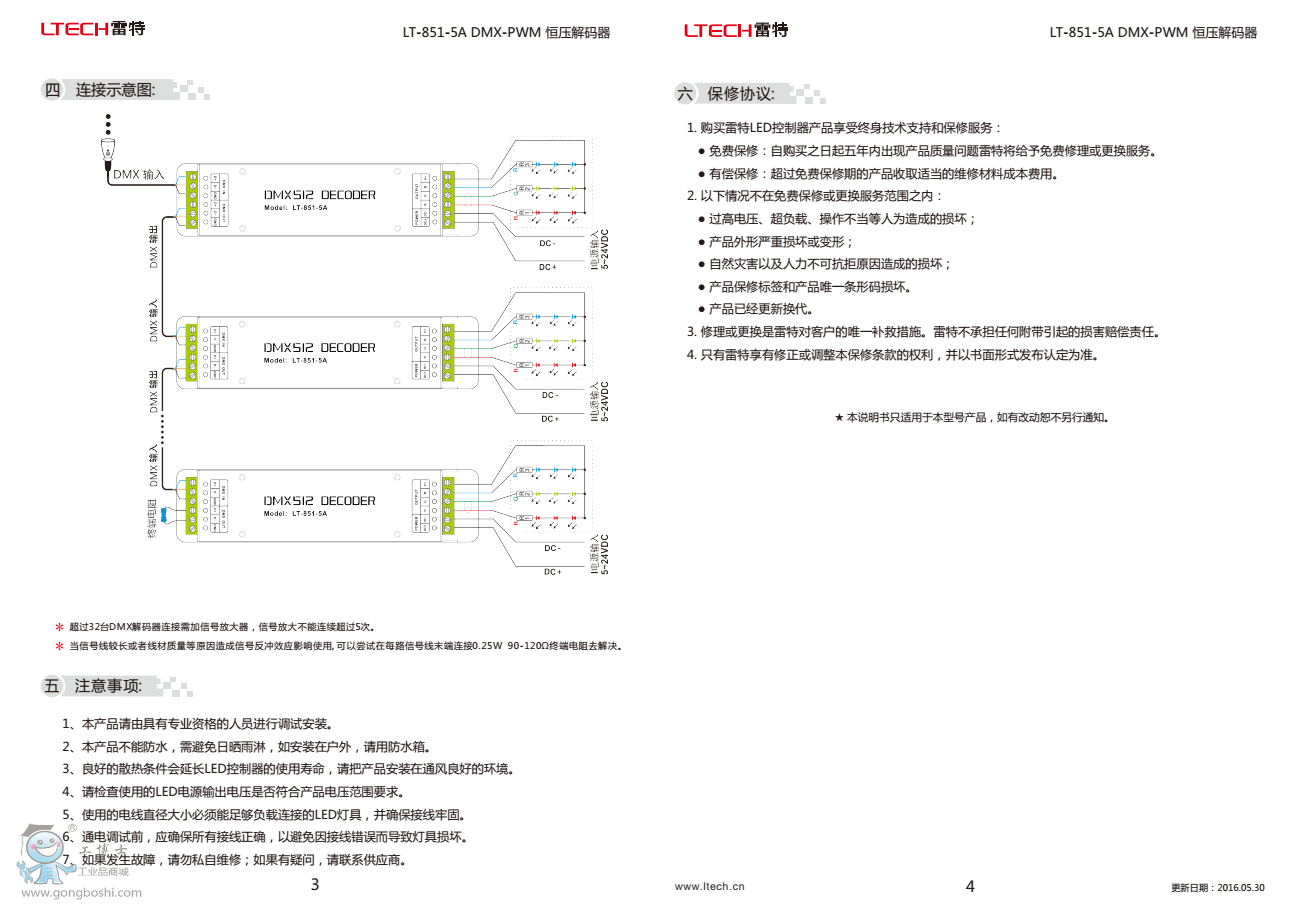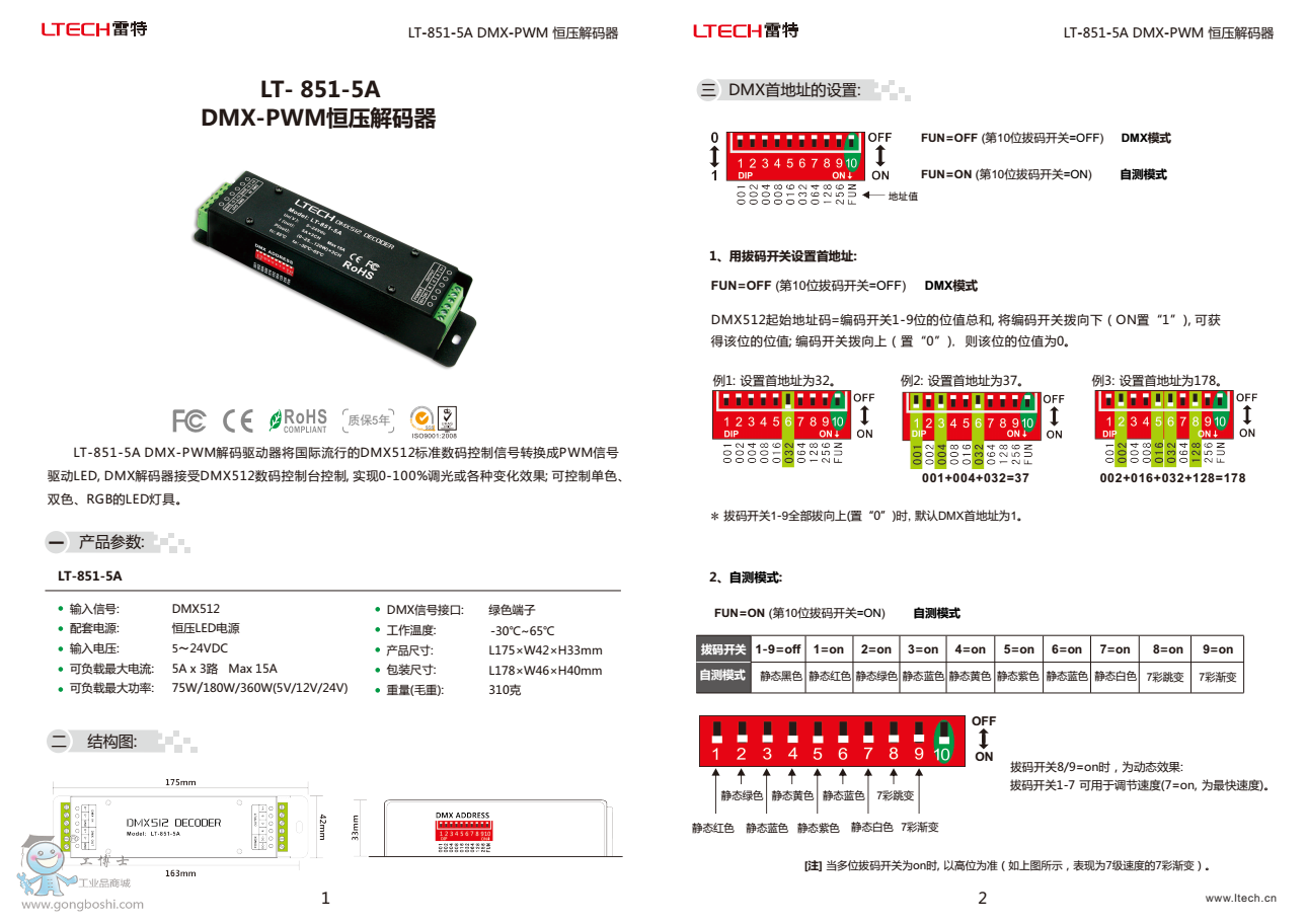 雷特LT-851-5A DMX-PWM恒壓解碼器