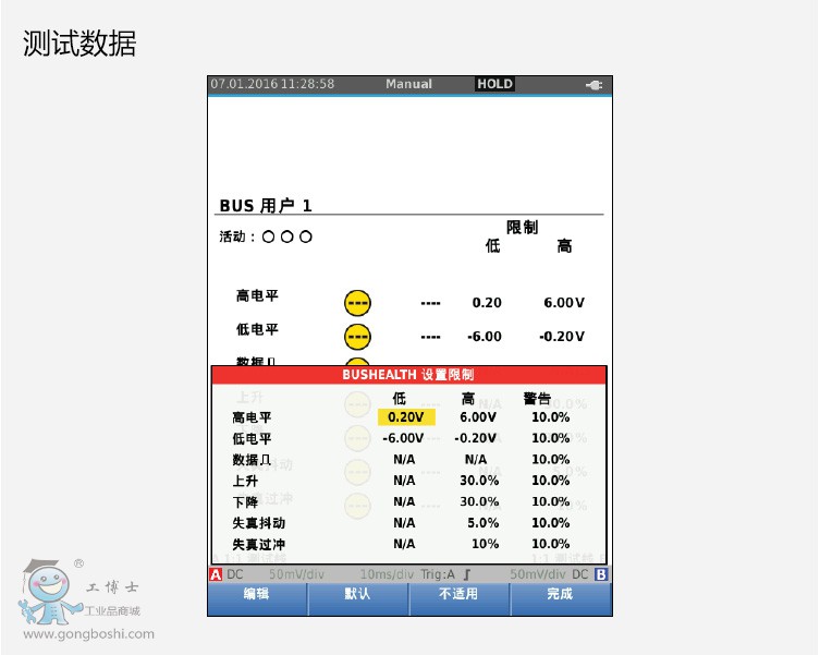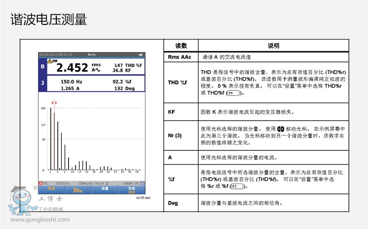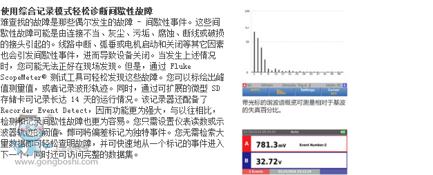 ScopeMeter® 120B 系列是一款外形緊湊、堅固耐用的示波器,適用于工業(yè)電氣和機電設(shè)備故障排除及維護應(yīng)用。此測試工具集示波器、萬用表和高速記錄器于一身,使用非常簡便。ScopeMeter 120B 系列同時還兼容 Fluke Connect® 移動應(yīng)用程序和 FlukeView®,通過ScopeMeter 軟件能夠進行深入合作、數(shù)據(jù)分析并存檔關(guān)鍵測試信息。120B 系列工業(yè)用 ScopeMeter 測試工具擁有創(chuàng)新功能,專門設(shè)計以幫助技術(shù)人員更快的進行故障排除并獲得所需的信息,從而保證系統(tǒng)正常運行。無需進行手動測量調(diào)整即可通過 Connect and ViewTM觸發(fā)和設(shè)置技術(shù)顯示波形,并通過 Fluke IntellaSetTM技術(shù)自動顯示相關(guān)測量數(shù)值。這款示波器能夠通過 Recorder Event Detect 功能捕捉并記錄難以發(fā)現(xiàn)的間歇性事件,方便技術(shù)人員查看和分析。