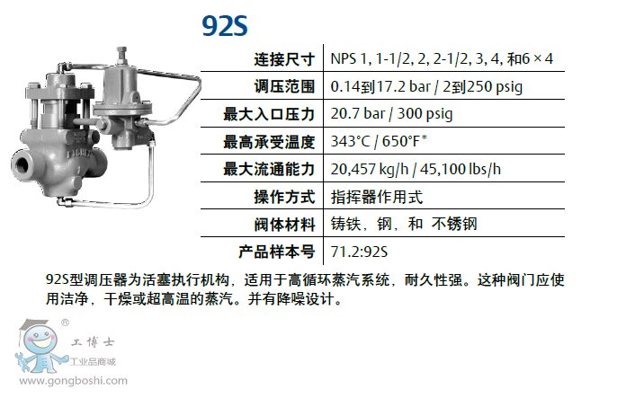 92S型調壓器為活塞執行機構,適用于高循環蒸汽系統,耐久性強。這種閥門應使