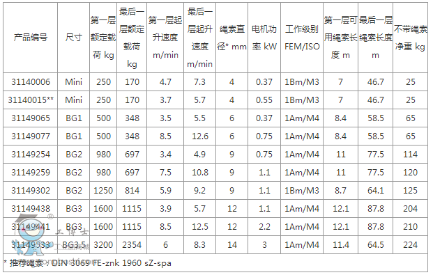 標(biāo)配帶溝槽設(shè)計的繩索卷筒,用于大載荷的繩索。