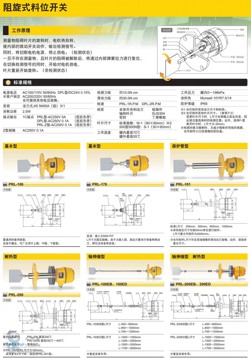 日本東和阻旋式料位開關PRL-170基本型 |