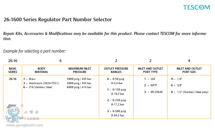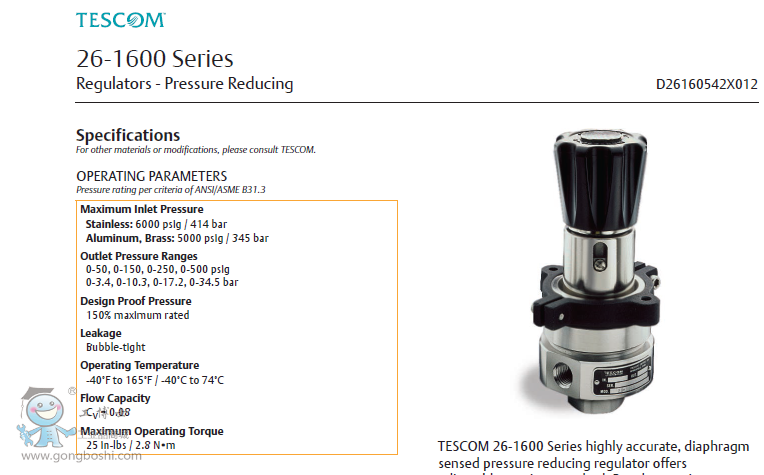 TESCOM 26-1600系列 減壓調節閥