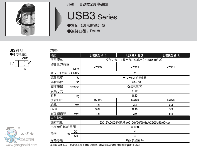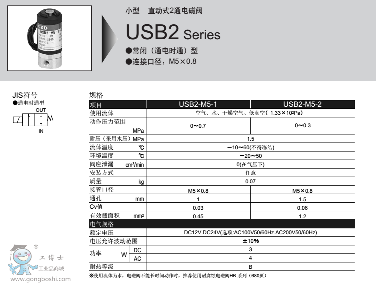 日本CKD(喜開理) 小型直動式2通電磁閥HNB1/USB2/USB3