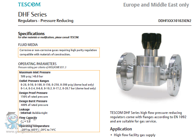 TESCOM DHF Series high flow pressure reducing regulators come with flanges according to EN 1092