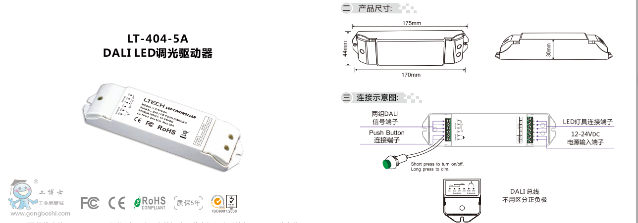 雷特DALI LED調光器LT-404-5A