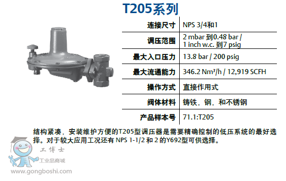 結構緊湊,安裝維護方便的T205型調壓器是需要精確控制的低壓系統的*好選