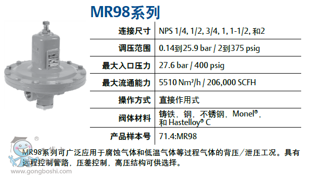 MR98系列泄壓/背壓調壓器 Fisher費希爾