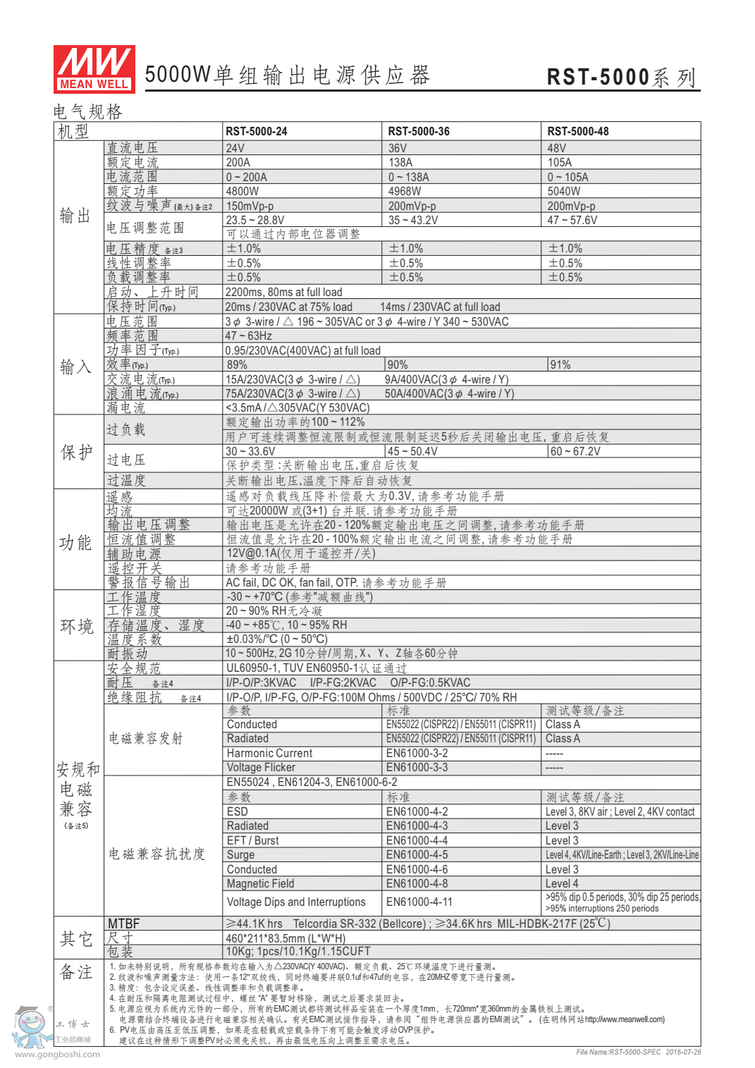 臺灣明緯可編程電源供應器RST-5000-36 5000W24V |