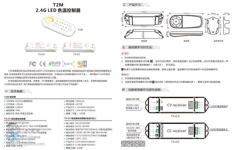 LTECH雷特T2M 2.4G LED色溫控制器 |