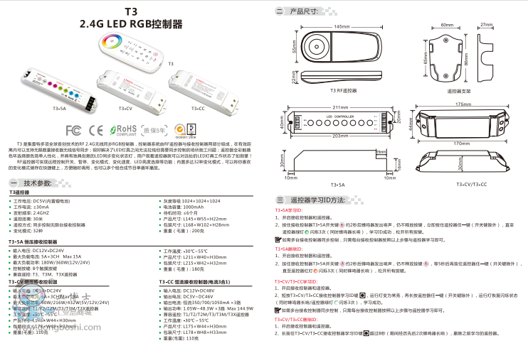 LTECH雷特T3 2.4G LED RGB控制器