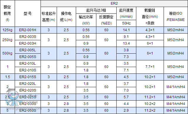 重載的實(shí)力派 125kg-20t(3相) KITO ER2系列