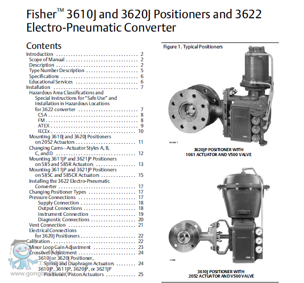 - 多功能—3610J 和 3610JP 定位器從控制設備接受氣動輸入信號,而 3620J 和 3620JP 定位器從控制設備接受直流電流輸入信號。氣動和電動氣動定位器均提供分程功能以及可調的零位和量程。定位器零位和量程的可調比允許對所有標準輸入信號(包括分程)使用單一量程彈簧。