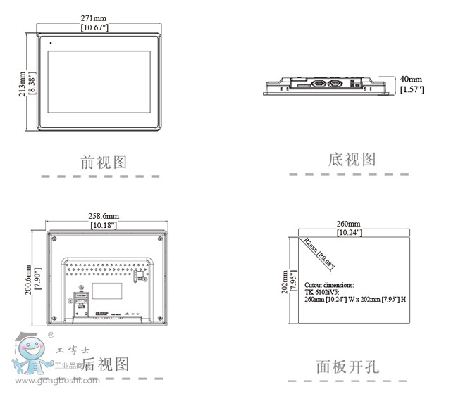 3.威綸通觸摸屏TK系列TK6102iV6 產(chǎn)品尺寸: