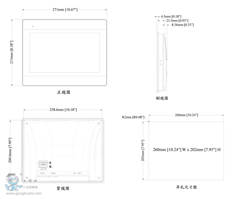 3.威綸通觸摸屏MT(IP)系列MT6102IQ產品尺寸: