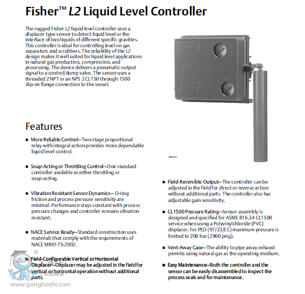 費希爾FISHER L2,L2sj,L2E 液位控制器-艾默生EMERSON