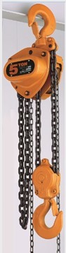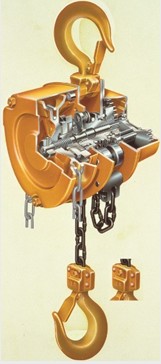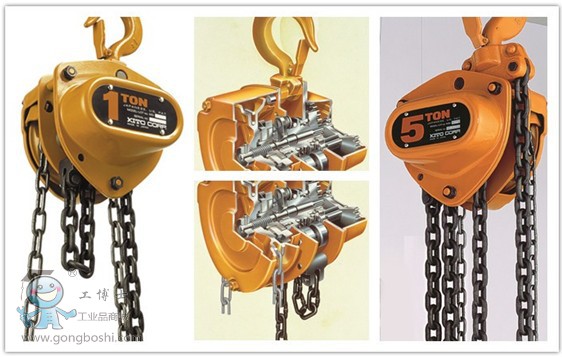 在下降操作時,當重物下降至鏈條長度時,鏈條擋可阻止鏈條繼續下降,