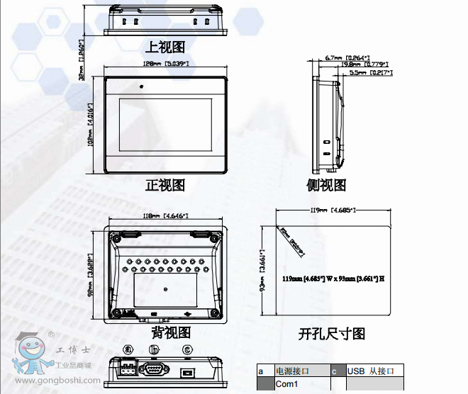 3.威綸通觸摸屏TK系列TK6050iP 產品尺寸:
