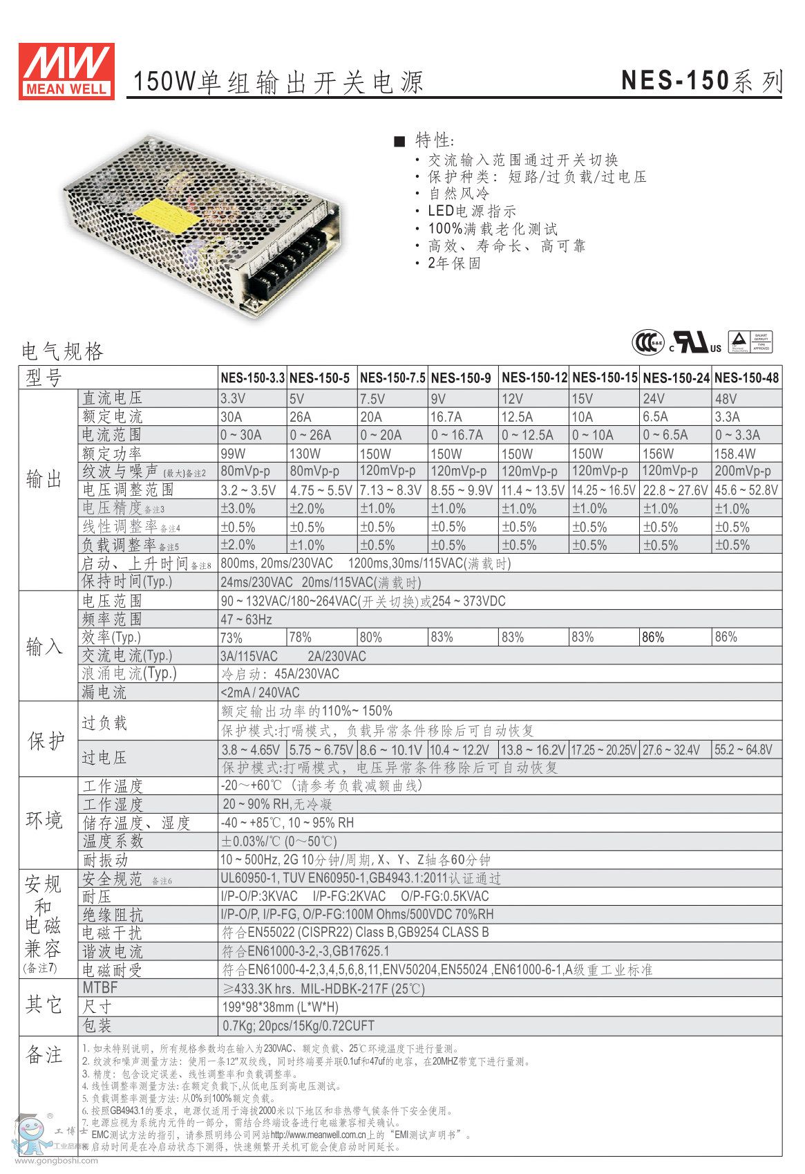 明緯開關電源NES-150-12經濟網殼型 質保2年 |