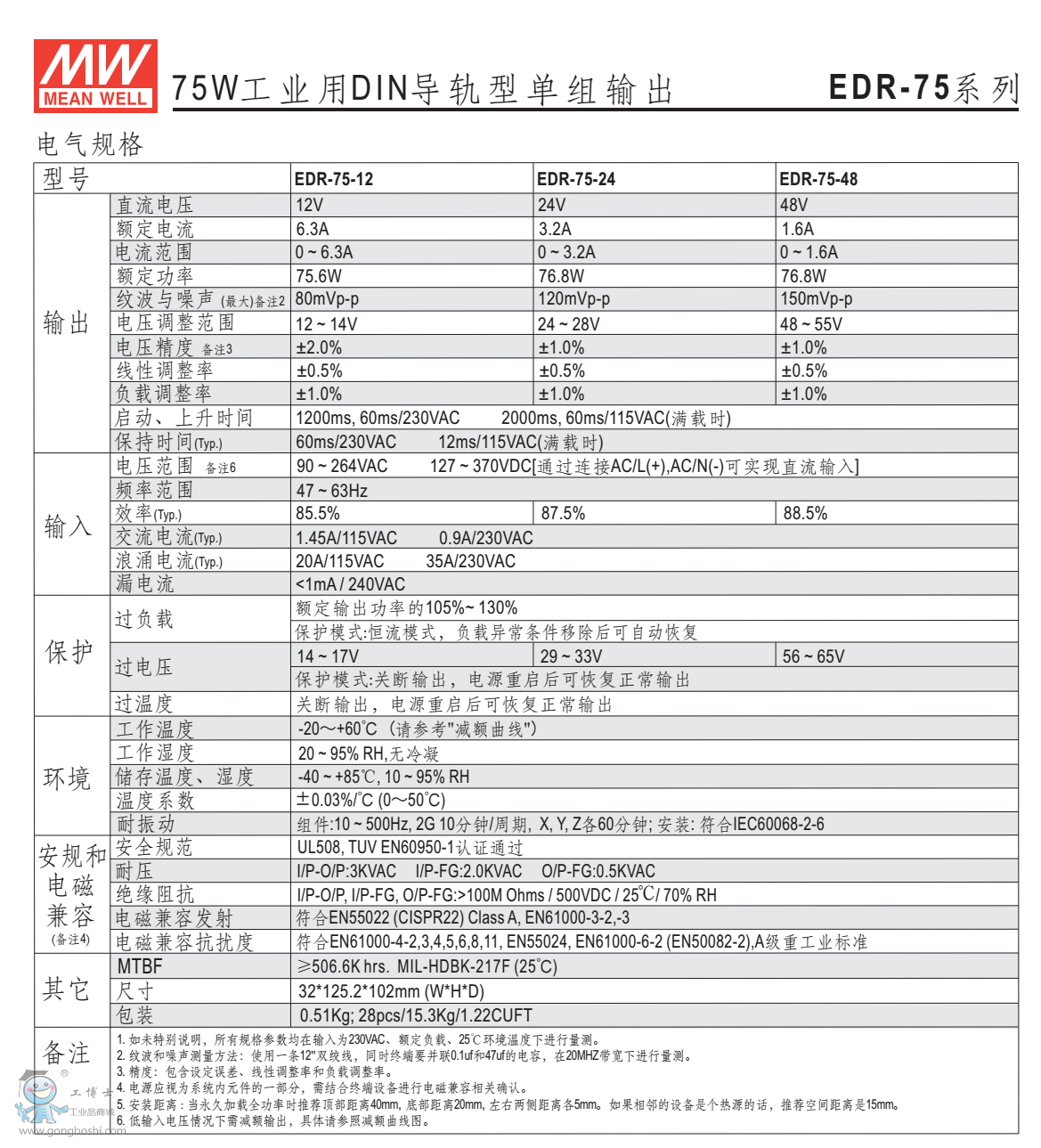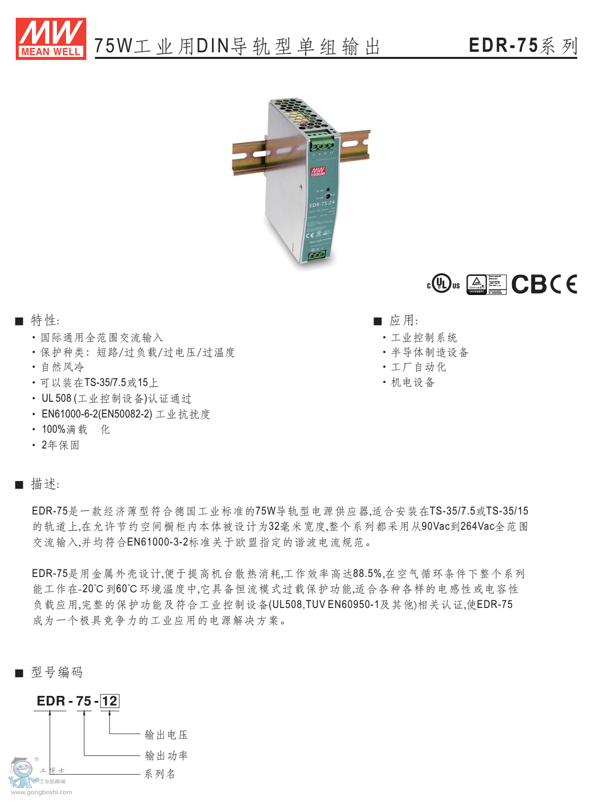 臺灣明緯導軌電源EDR-75-12 2年質保 |