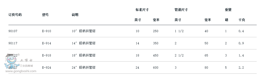 鋁柄斜管鉗極其適合狹小空間和高處應用中的作業。設計用于方便地進入距離很近的平行管道之間。與重負荷管鉗相比,重量輕 40%。