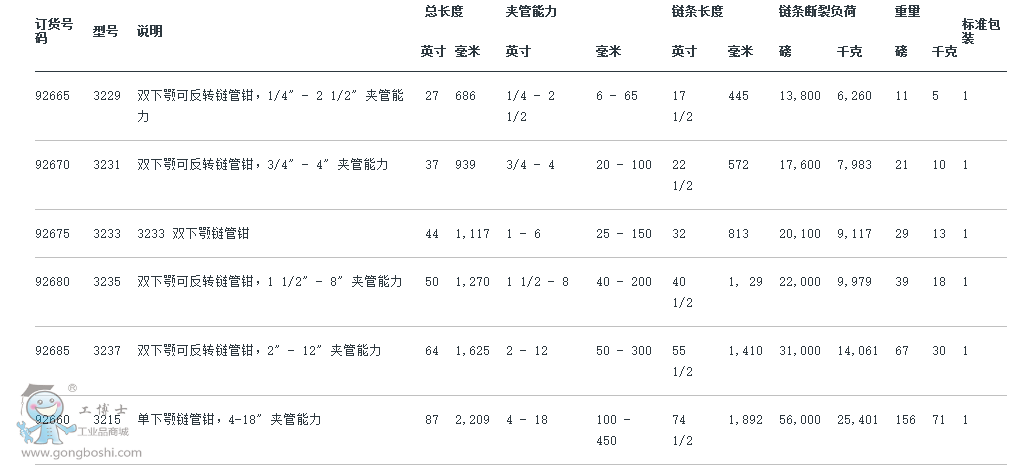 所有型號全都采用能夠反轉的雙下顎鉗口,唯一例外的是 3215 型為單下顎管鉗。