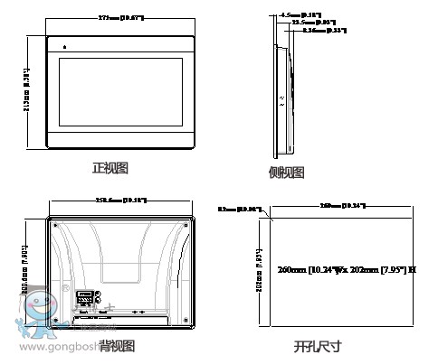 3.威綸通觸摸屏MT系列MT6103iP產(chǎn)品尺寸: