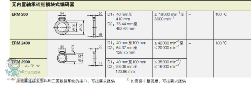 由于結構特點,ERM磁柵通常安裝在直徑大于工件的圓周處。 因此編碼器的位置誤差影響工件精度相對較小。