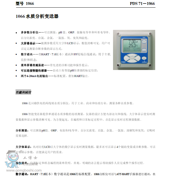 該產品是回路供電的兩線制液體分析變送器,適合于工業、商業和市政應用,可以提供多種液體參數的測量。