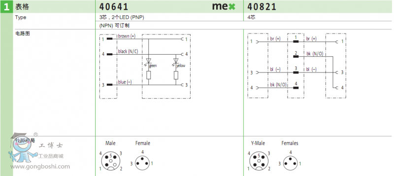 1組數字 連接器類型 12401 代表M12母頭90°配LED指示燈,4