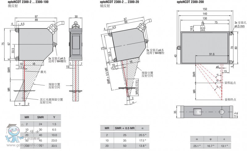 optoNCDT2300 系列傳感器是德國米銥公司激光三角反射式傳感器中的高端產品。非常適合高速應用,如監測震動或者復雜表面的測量。 該傳感器不僅適合漫反射表面,還同樣適合鏡面表面。 通過多峰值測量軟件,傳感器可以從一側測量透明材料的厚度值。