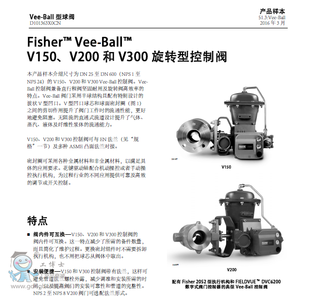 Fisher Vee-Ball™ V150,費希爾 Vee-Ball™V150是一款單法蘭閥,適用于過程工業中很多應用的節流或開關操作。V150 供應尺寸從 NPS 1 到 20,壓力等級 CL150(DN 25 到 300,PN 10/16)。V150、V200 和 V300 設計之間的閥內件部件可互換。