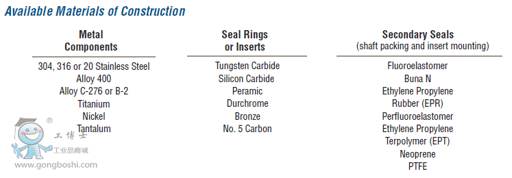 • No dynamic o-ring provides for longer MTBF by eliminating seal face hang-ups.