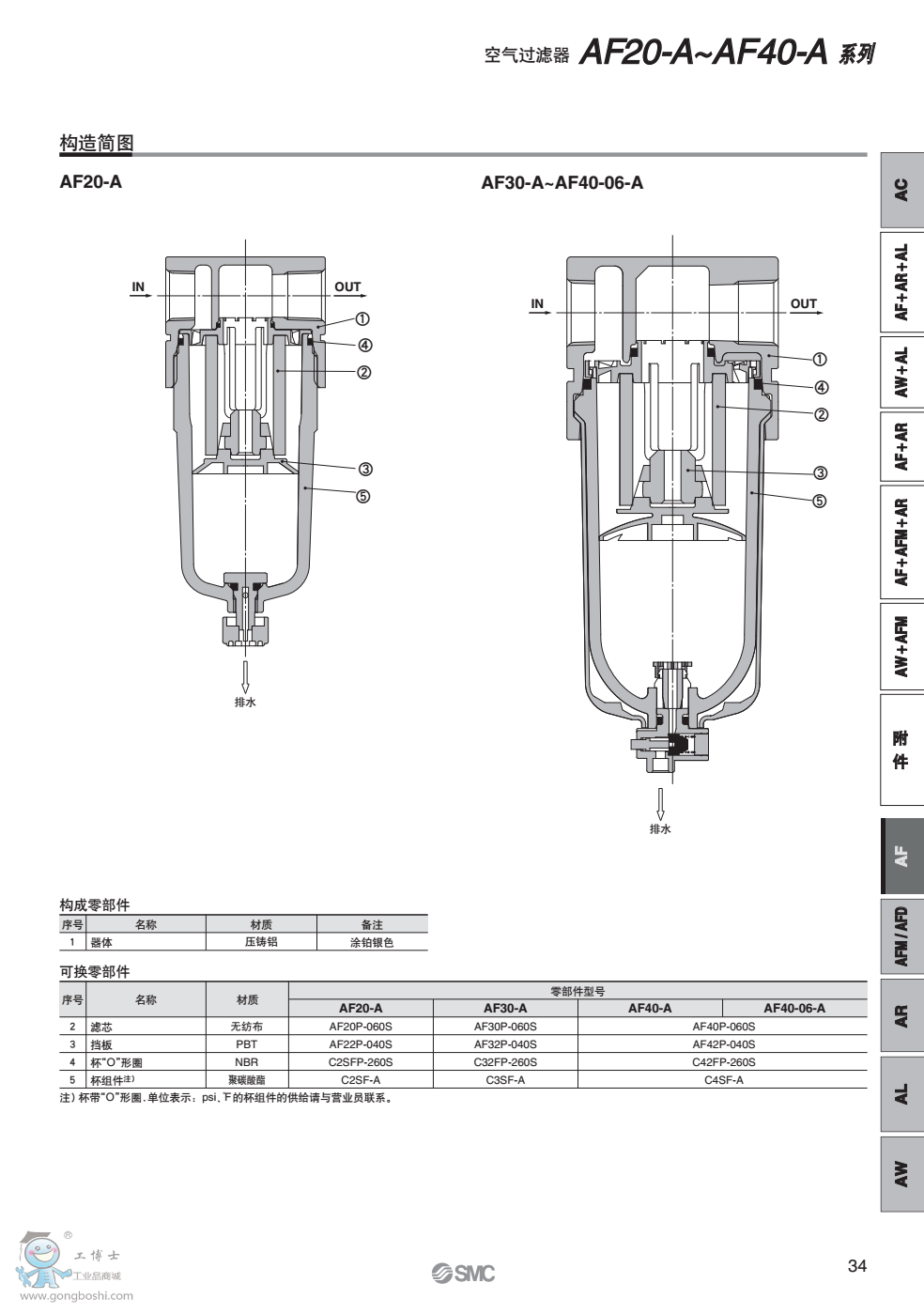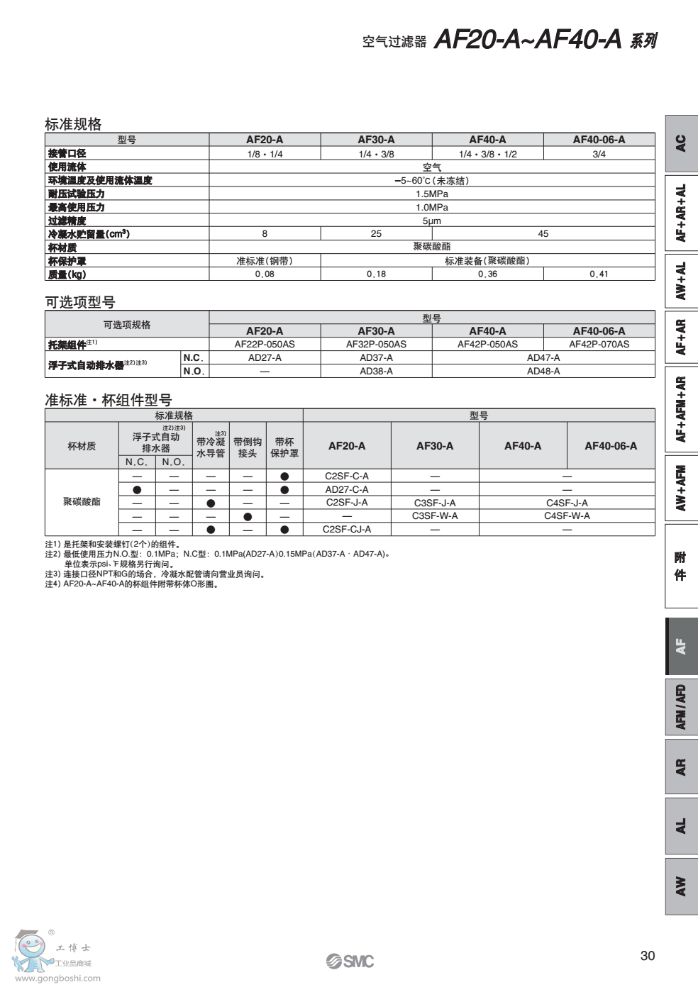 日本SMC AF10-AF60-A 系列 模塊式 空氣過濾器