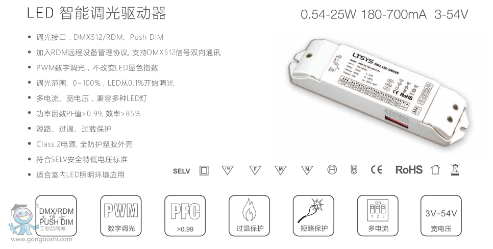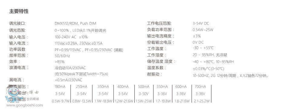 雷特LED調光電源DMX-25-180-700-F1P1 25W