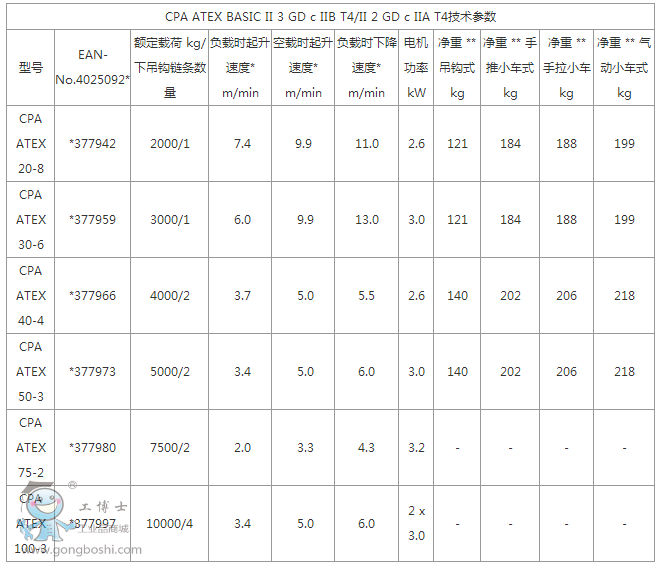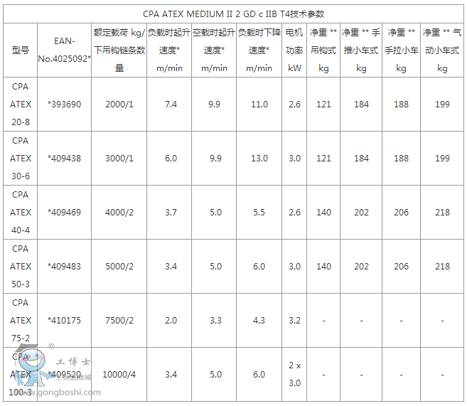 德國Yale耶魯氣動環鏈葫蘆 CPA ATEX 氣動環鏈葫蘆配吊鉤與小車