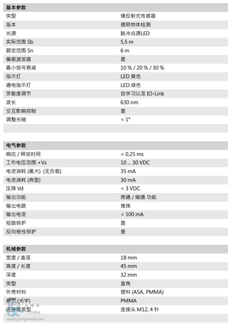Baumer/堡盟O500.RP.T-11157351鏡反射式光電傳感器 |
