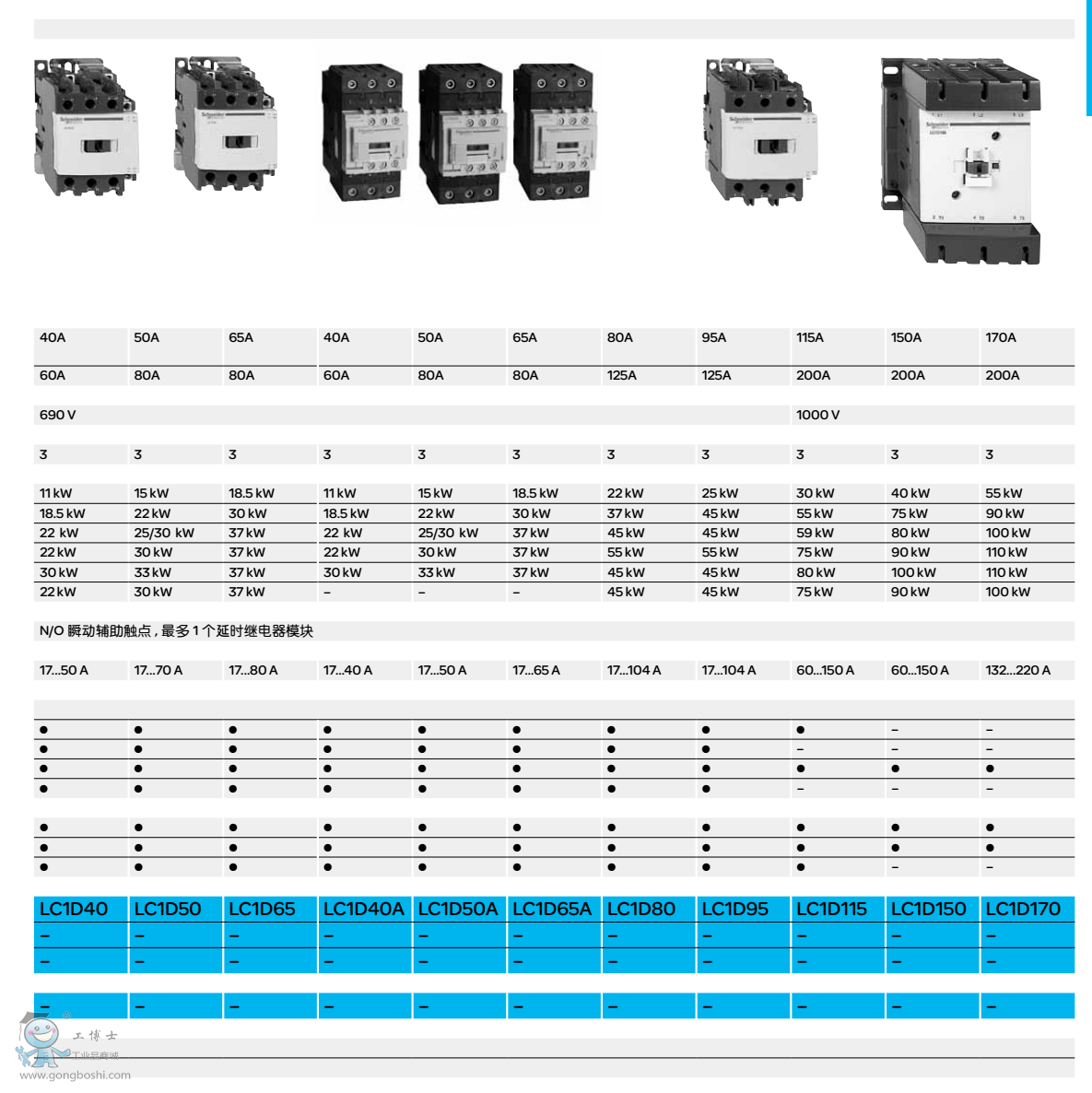 施耐德LC1D40M7C 3極交流接觸器AC220V