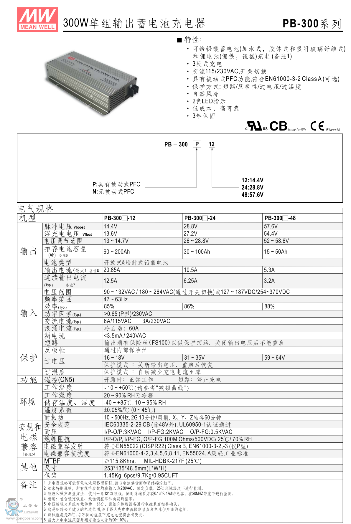 臺灣明緯PB-300-24 蓄電池充電器 |