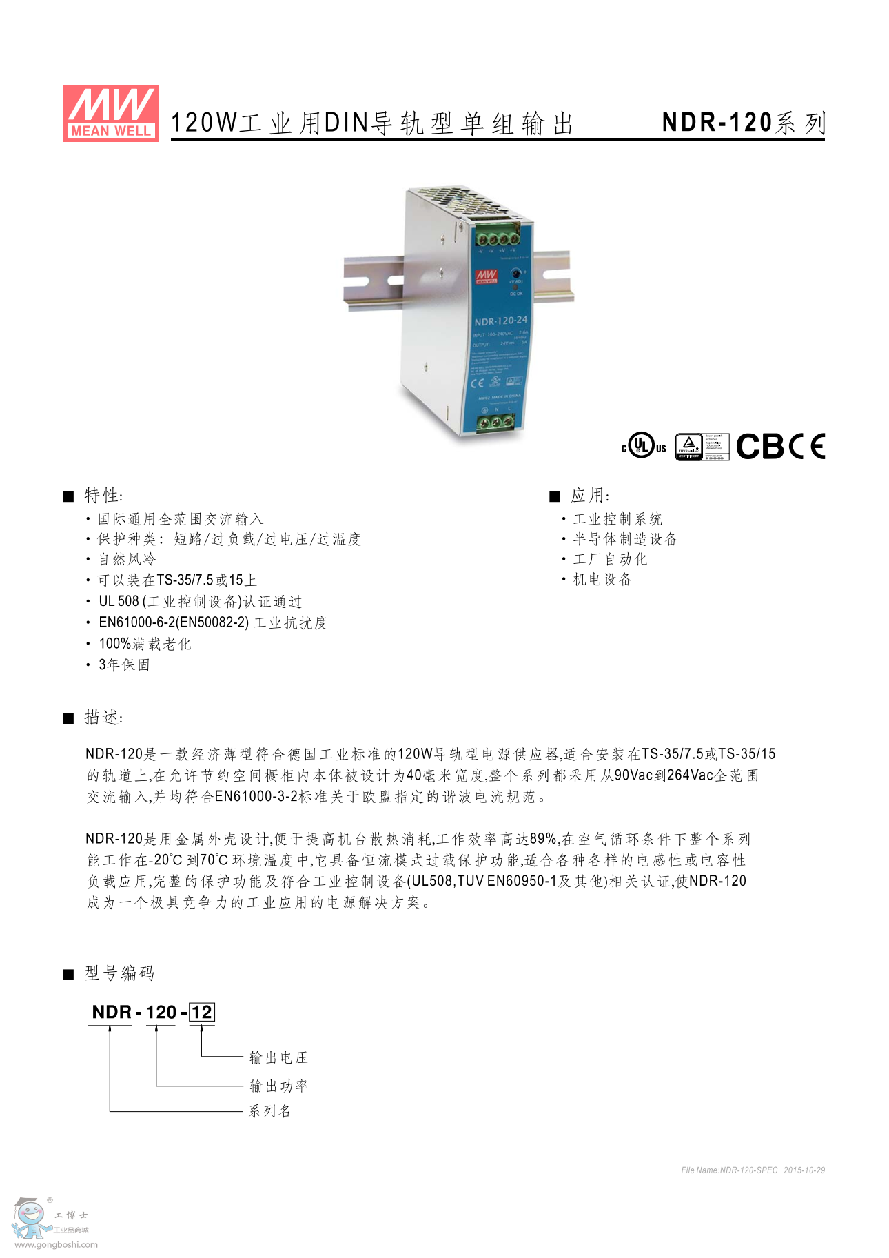 明緯導軌電源NDR-120-24 24V5A 供應 |