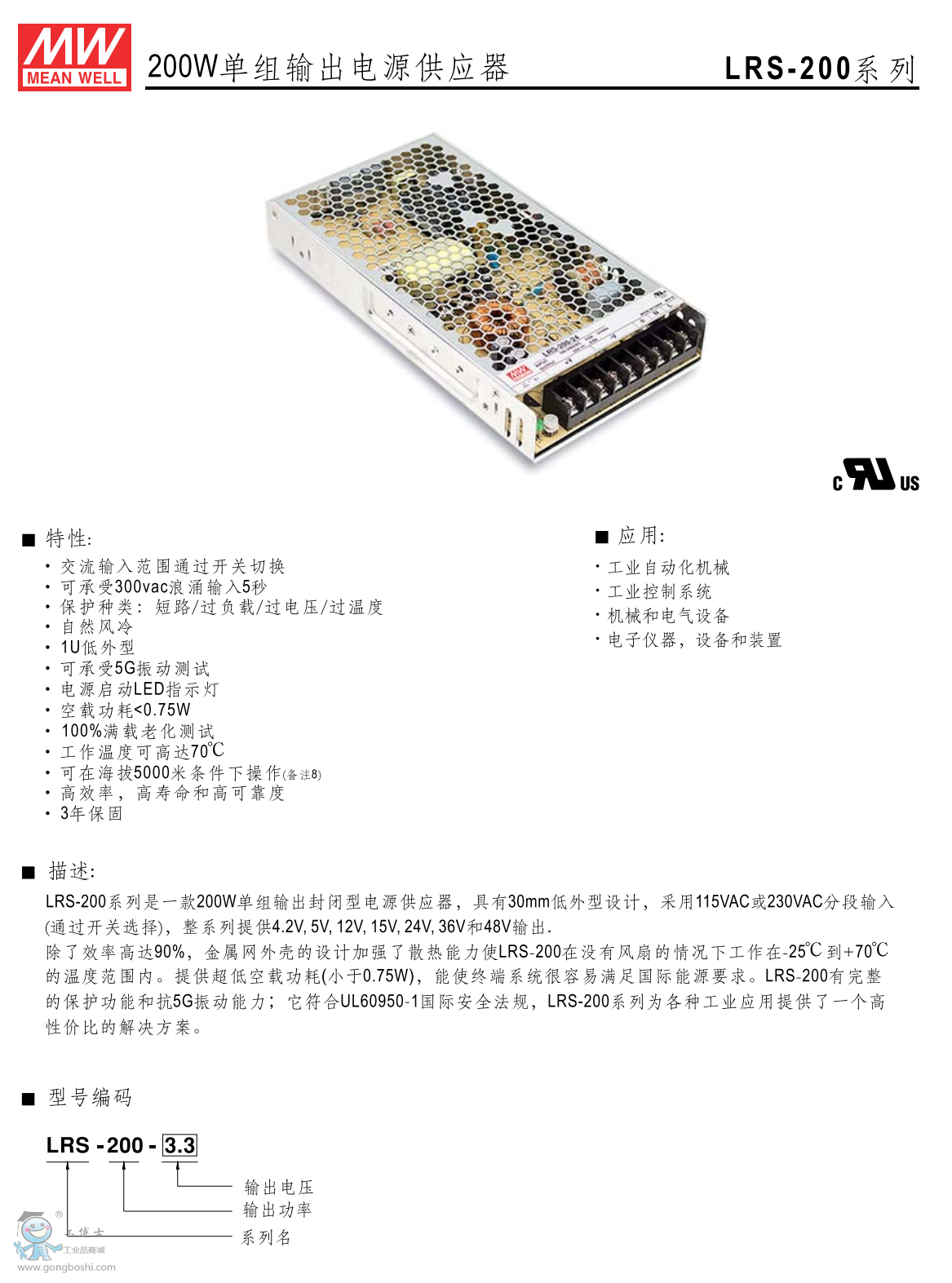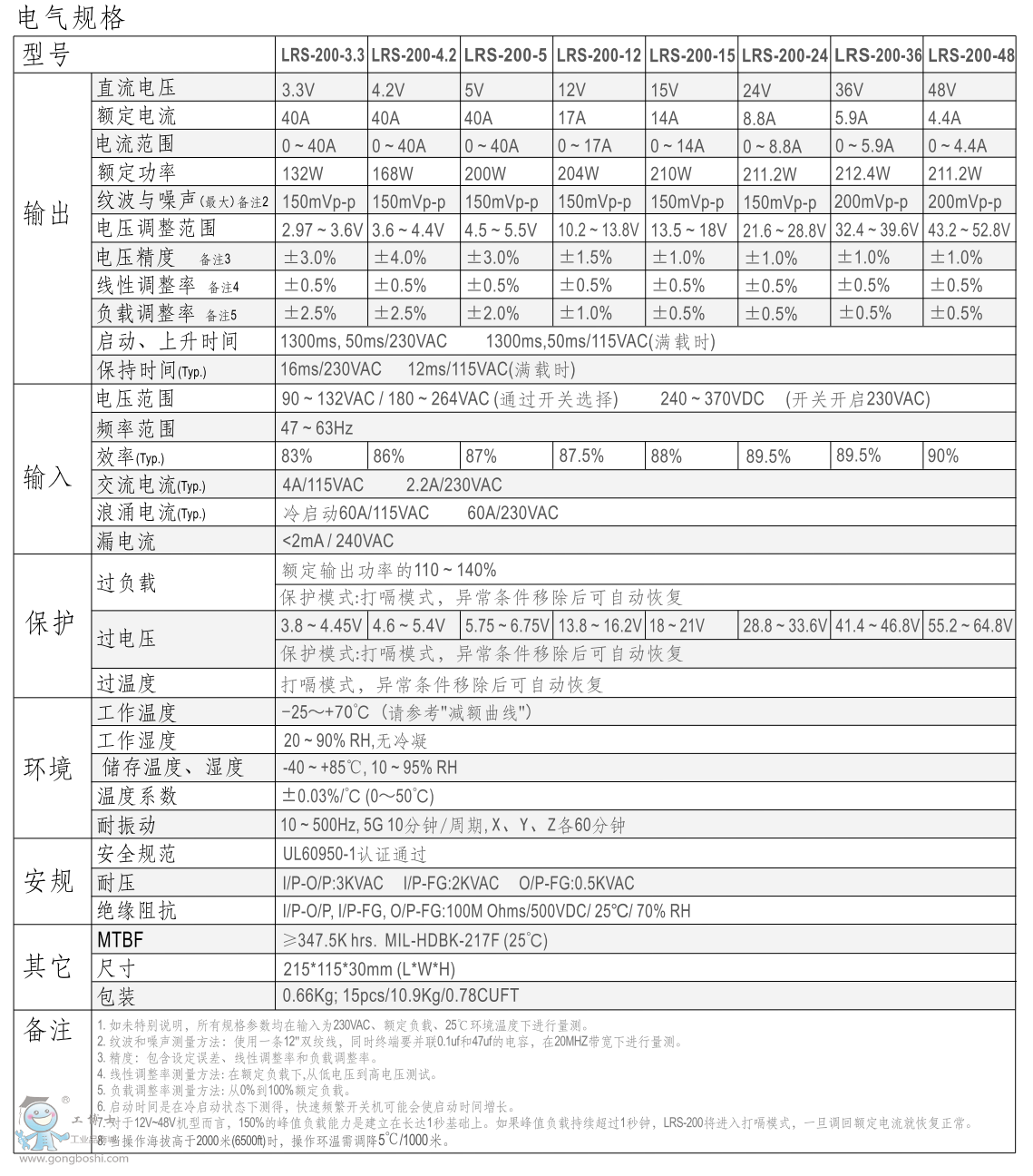 明緯開關電源LRS-200-12 12V17A 供應 |